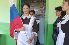 Внесение Государственного флага Российской Федерации и Государственного флага Республики Татарстан вручено отличникам учебы Нутфуллиной З.З. и Нутфуллиной К.А. 04.09.2023