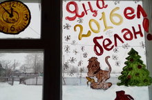 В школе прошёл конкурс "Рисунок на стекле", первое место занял 5 класс