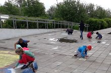 Рисовали цветными мелками. Рисовали солнце, цветы, море, дом.