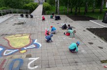Организовали конкурс рисунков на асфальте "Счастливые дети - счастливая стран"