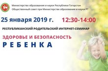 Во исполнение плана работы Министерства образования и науки Республики Татарстан 25.01.2019 с 12.30 до 14.00 состоится Республиканский родительский интернет-семинар «Здоровье и безопасность ребенка».