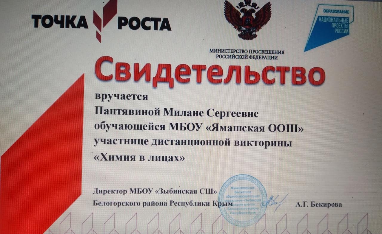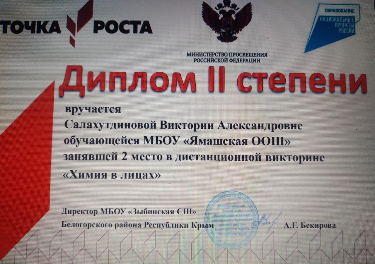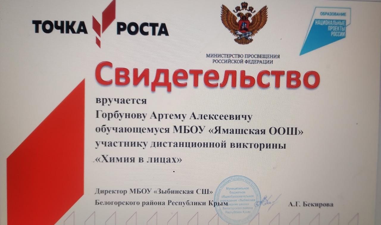 Команда МБОУ "Ямашская ООШ" в которую входили учащиейся 8 класса Галактионов Артём, 7 класса Неклюдова Александра, 9 класса Салахутдинова Виктория под руководством учителя физики Михайленко А.В награждены Дипломом победителя полуфинального этапа. Каждый участник был награжден именными сертификатами об участии в научно-техническом конкурсе "Инношкола".