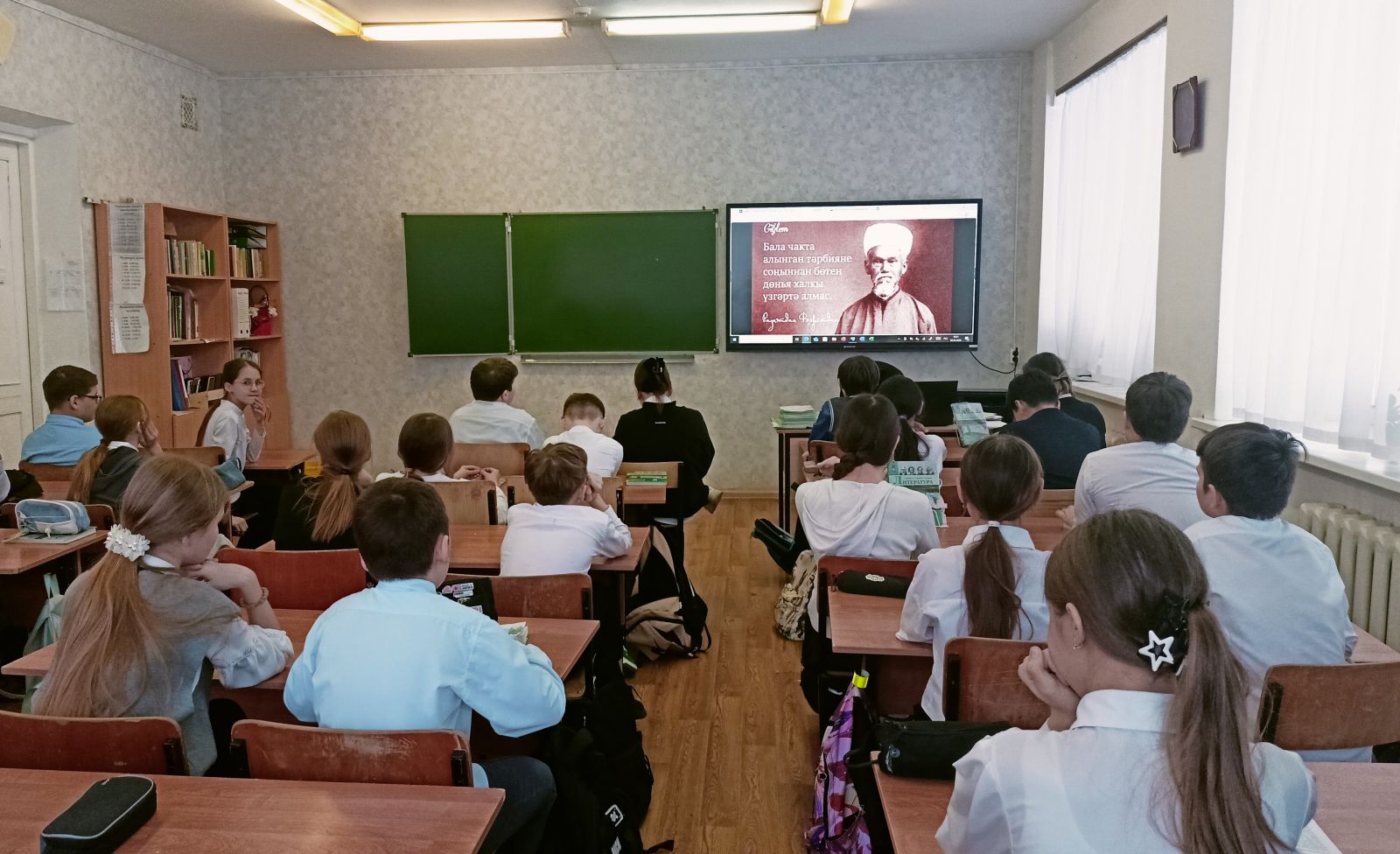 На уроке учащиеся погрузились в мысли Р. Фахреддина о воспитании как процессе постепенного совершенствования личности. Обсуждались общечеловеческие ценности, передаваемые из поколения в поколение: любовь к Родине; уважение к старшим; взаимопомощь и сострадание. В занятии участвовали 15 школьников.