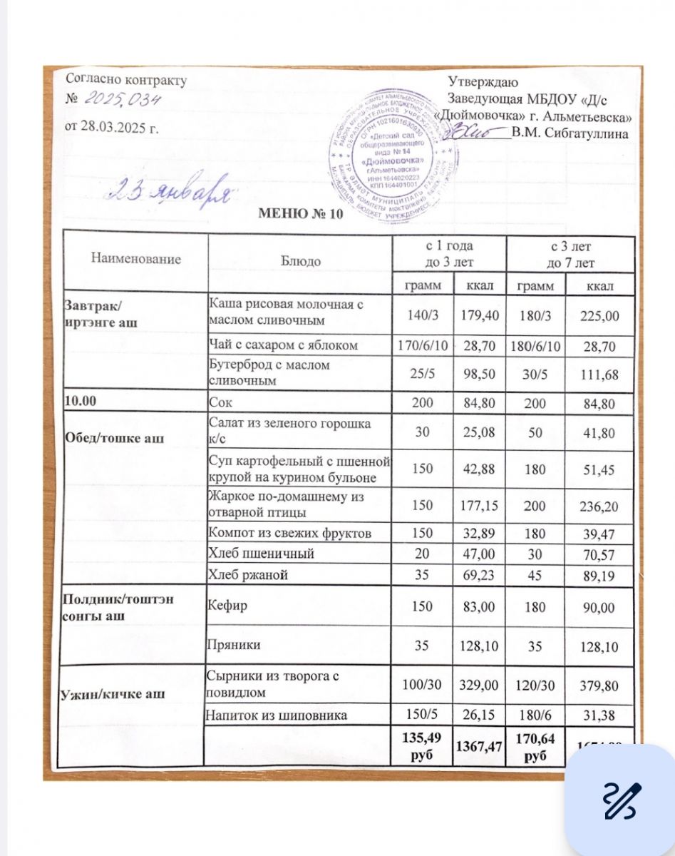 Ежедневное меню на 2026 год