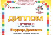 Поздравляем воспитанника средней группы Даминова Радмира (воспитатель Абдульманова А.Т.) с победой! (1 место) в городском конкурсе детского творчества "Альметьевский хоккей- справляет юбилей!" в номинации "Прикладное творчество".