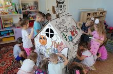 Сегодня много говорится о творческом развитии личности как о требовании времени. Само слово "творчество" сейчас входит в десятку наиболее употребительных слов. С развитием творческого потенциала личности связывают экономический рост государства, развитие всех отраслей народного хозяйства и как следствие благосотояние народа. Не надо забывать и о том, что повышается автоматизация производства, за счёт уменьшения доли труда, требующей однотипных скучных операций. Дошкольное детство одна из первоначальных ступеней развития творческого потенциала личности. Сегодня дети средней группы №1 с небольшой помощью воспитателя Долининой Ю.П. создавали дом своей мечты. Сначала они его собрали и склеили из картона, дополнили необходимыми на их взгляд деталями, а потом сделали его креативным, привлекательным, отличающимся от других домов на нашей улице. В ход пошли различные материалы. Разве это не творчество?! "Ребёнок, испытавший радость творчества даже в самой минимальной степени, становится другим, чем ребёнок, подражающий действиям других" Б.Астафьев.
