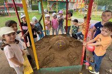 Сегодня в саду состоялся ежегодный фестиваль песочных скульптур. В этом году он проходил под девизом "Братья наши меньшие тоже нуждаются в нашей защите". Дети сначала выбирали один вид живого существа и искали информацию, фотографии о его жизни. А сегодня был завершающий день по их изготовлению из песка. Что из этого получилось-можете посмотреть сами. Старшая группа N2 сделали божью коровку, старшая группа N1 - улитку, средняя группа N2 - черепаху, малыши просто искали в песке все живое.