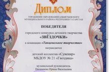 Диплом победителя городского конкурса в номинации "Танцевальное творчество"