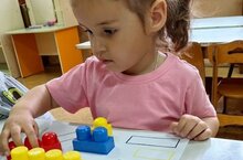 Индивидуальная работа по лего-играм на бумаге, на закрепление цветов, форм и количества.