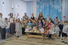 Педагоги, родители и воспитанники детского сада передали волонтерскому штабу угощения для бойцов в зоне СВО, а также новогодние открытки, изготовленные своими руками.