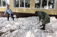 В детском саду началась пора весенних субботников. Основной вид работы - раскидывание снега. Это ускорит таяние снега для проведения дальнейших работ по благоустройству и озеленению территории.