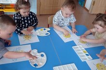 Мы сегодня провели увлекательное мероприятие. С детьми мы побеседовали о пчёлах, что у пчёл как и в наших семьях, есть свои обязанности и каждый отвечает за своё дело, есть пчёлы: строители, няньки, трутни, работяги и т.д. Рассмотрели мед и соты, узнали, что пчелы опыляют многие растения; познакомились с профессией «Пчеловод». Посмотрели фильм об этих удивительных насекомых и на память в честь этого дня решили нарисовать пчёлок в нетрадиционной технике пальчиковыми красками -