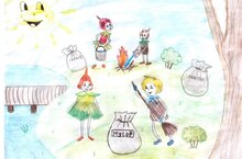 Рисунок «Эколята-защитники природы» Садиковой Марьям Ленаровны, воспитанницы подготовительной к школе группы участницы муниципального этапа Всероссийского конкурса детского рисунка «Эколята за раздельный сбор отходов и повторное использование материалов».
