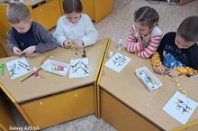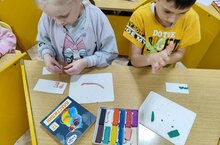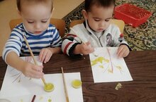Ребята первой младшей группы, ранее, познакомились уже с кисточкой, но, оказалось, интересным, для них, что кисть, может, делать шаги. Топ, топ, топ.... -