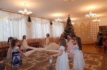 В детском саду проходит неделя новогодних утренников. Дети радуются встрече с дедом Морозом, Снегурочкой и другими сказочными персонажами. На праздниках - много песен, хороводов, стихотворений, игр. Праздники для детей подготовили сотрудники и родители детского сада.