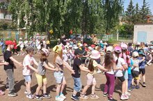 1 июня радостно, звонко, тепло и красочно прошёл главный праздник детства – День защиты детей в нашем детском саду. Все педагоги старались сделать так, чтобы этот праздник надолго запомнился детям. Мы постарались в этот день создать праздничную атмосферу и порадовать детей весёлыми играми, песнями, плясками, флешмобом.