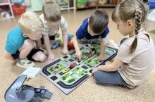Воспитанники группы «Солнышко» самостоятельно закрепляют полученные знания по правилам безопасности дорожного движения через различные виды игр.