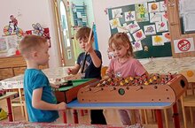 В нашей группе "Солнышко"есть различные конструкторы: лего мелкое, крупное, лего дупло, из крышек от фрутоняни, но самый любимый деревянный " Бабашки".Ребята строят из него магазины, дороги, дома, танки, корабли и т.д. Благодаря этому конструктору у детей развивается мышление, воображение, умение играть сообща, дружно. Постройки получаются интересные, устойчивые, дети с удовольствием рассказывают о том, что у них получились, обыгрывают свои постройки.
