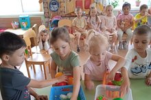 Дети из средней группы "Фантазеры" провели день знаний правил безопасности, повторяли правила дорожного движения, играли, пополняли запас знаний о транспортных средствах, ознакомились с историей их появления и вновь напомнили друг другу правила поведения водителей, пешеходов и пассажиров. На прогулке складывали автопазлы, а также поделились урожаем лука с малышами из группы "Умники и умницы". Воспитатель Фролова А. Н.