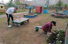 Воспитатель 1 младшей группы группы"Крепыш"Елена Ивановна Савельева выражает благодарность родителям, принявшим участие в покраске участка и посадки цветов на территории детского сада.