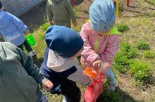 Трудовая деятельность на прогулке:сбор мусора на участке. Цель: приучать соблюдать порядок на участке детского сада.