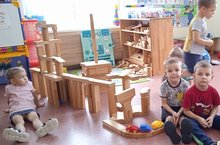 Дети средней группы "Цыплята"с удовольствием играют деревянным конструктором" Бабашки ".Вот где простор для конструирования, фантазии и игры. Дети как настоящие инженеры, архитекторы сооружают различные постройки, транспорт, дорогу. В ходе игры они обсуждают, договариваются, тем самым учатся быть дружными, общительными. Также у ребят развивается воображение, мышление, речь.