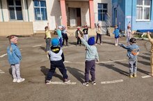 Праздник организовали на участке. Даже погода подыграла, с самого утра было солнечно, тепло.Приветствовала и поздравила всех с праздником заведующая детским садом Киршина Альбина Равиловна.