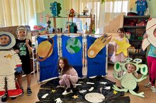 Вместе мы рисовали, солнце, планеты, звезды и сделали ракеты своими руками.