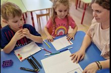 Начали учить цвета, с помощью педагога отгадывают и запоминают загадки, слушают песни, выполняют физкультминутки на английском языке.