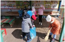 22 апреля во Всемирный День Земли страшая группа "Котята" и подготовительная к школе группа "Ладушки" провели трудовой десант (очистили участок от мусора, подмели дорожки, побелили деревья). Дети с воодушевлением и энтузиазмом принимали участие и были очень довольны от результа выполненной работы. Воспитатели:Малый Р. М, Кузнецова О. В.