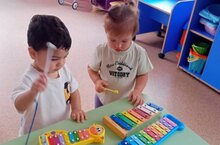 дети ясельной группы "Котята" провели первые занятия, познакомились и поиграли с музыкальными инструментами ( бубнами и металлофонами) под музыкальное сопровождение, станцевали с погремушками, а на развитии речи поиграли с игрушками из настольного театра и провели артикуляционную гимнастику. Воспитатель Фролова А.Н