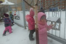 Зима - суровое время для птиц.Сильные морозы, снегопады, метели и мало корма. Но не холод, а отсутствие пищи- самый страшный враг для зимующих птиц. Сложно добывать пищу зимующим у нас синицам, голубям, воробьям, сорокам, щеглам, воронам. Семена деревьев и трав заметены снегом. Многие лесные птицы прилетают поближе к людям в город. Мы можем помочь им пережить зимние холода, а весной они порадуют нас своими песнями. Дети подготовительной группы " Солнышко" с воспитателями Ахметхановой И.З. и Гатауллиной А.А. повесили кормушки и насыпали птицам угощения: крупу, хлебные крошки .