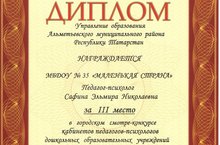 Поздравляем педагога-психолога Сафину Э.Н. с победой (III местом) в городском смотре-конкурсе кабинетов педагогов-психологов ДОУ АМР РТ.