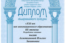Наши педагоги Шарипова Л.Ш., Костылева С.В., Ахметханова И.З., Иванова Е.А., Малый Р.М. заняли 3 место в общероссийском конкурсе «21 век – век инновационного образования». Примите наши поздравления!