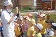 8 июля 2014 года в нашем детском саду был организован праздник «Помощь жителям Цветочного городка», под девизом «Витамины-защитники организма».