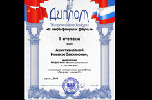 Педагоги нашего детского сада (Шарипова Л.Ш., Ахметханова И.З, Иванова Е. И.) приняли участие во всероссийском конкурсе «В мире флоры и фауны». Их методическая разработка «Природа - наш дом» заняла второе место. Поздравляем!!!