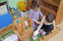 Конструктор " Бабашки "любят и мальчики, и девочки группы " Солнышко ".Вот такой замечательный замок построили девочки, украсили деталями магнитного конструктора. Поселили своих любимых питомцев. А из другого деревянного конструктора получился целый городок с дорогой,