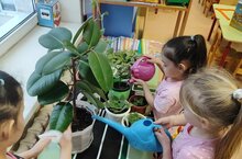 Бергәләп үсемлекләргә группада су сиптек, үсемлекләрнең эре яфракларын дымлы чүпрәк белән сөрттек, туфракны йомшарттык