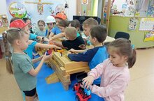 Дети из подготовительной группы "Фантазеры" построили из деталей конструктора "Бабашки" стоянку для транспортных средств. Ребята с большим удовольствием дружно играют, закрепляя правила безопасности. Воспитатель Фролова А Н.