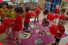В первой младшей группе "Зайчики" прошел День красного цвета, в этот день дети пришли в красной одежде. Воспитатель утром поговорила с детьми об этом цвете. Дети узнали, что это цвет радости, торжества, любви, силы, удачи. Дети находили группе предметы красного цвета, учились различать его среди других цветов. С увлечением играли с шарами красного цвета, рисовали красные мячики, танцевали, строили башенки из кубиков.