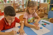 Воспитанники группы "Солнышко" продолжают совершенствовать фонематический слух, а также умение делить слова на части, называть слова с определенным слогом, закреплять звуковой анализ.