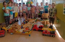 Дети старшей группы "Фантазеры" построили башни, многоэтажные дома, объединили все свои постройки в микрорайон и проиграли действия при возникновении пожара и других чрезвычайных ситуаций