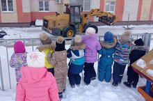 Во время прогулки дети группы «Кроха» не только понаблюдали за работой дворника, но и за машиной которая помогала убирать снег. Затем трудолюбивые малыши не остались в стороне и помогли воспитателю: сделали снежные комочки, очистили от снега веранду и дорожки.