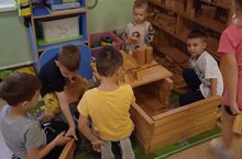 У детей группы "Солнышко"особая любовь к деревянному конструктору" Бабашки".Они ежедневно играют с ним. Строят различные постройки: ферму, автомойку, горку и т.д. Девочки, как и мальчики с большим удовольствием вместе придумывают, обговаривают, что у них будет, обыгрывают свои постройки. Таким образом, учатся ребята общаться, рассуждать, планировать, фантазировать. Развиваются конструктивные умения, мышление, расширяется кругозор.