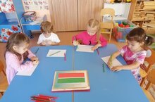 Воспитанники группы Крепыш начали ознакомиться с Р. Т., нарисовали флаг.