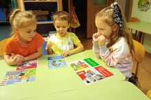Дети группы "Солнышко"рассматривали разные дорожные ситуации, обсуждали, как вести себя в той или иной ситуации, закрепляли названия дорожных знаков. Делились друг с другом своими знаниями.