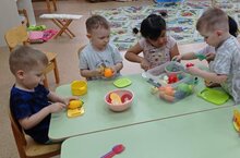 Вторая мл. группа " Кроха" посвятили свой день на тему: "Овощи и фрукты". Игра "Угадай на ощупь" позволила детям определить форму овощей и фруктов через тактильное восприятие. А с помощью познавательной игры "Где растет?" закрепили знания о том, где они растут. Самой увлекательной для детей стала сюжетно-ролевая игра " Повар", где дети училисьработать " ножами". Также все вместе отгадывали загадки, играли в дидактические игры "Съедобное-несъедобное", "Что лишнее и почему?", "Один-много", выполняли упражнения для развития мелкой моторики. Благодаря усиленной работе педагога Лебедевой И.М., дети узнали какие овощи и фрукты полезны для детей, как их употреблять, закрепили знания о гигиене. А самое главное, дети поняли, что овощи и фрукты полезнее, чем конфеты и к тому же еще и вкуснее.