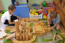 Дети старшей группы "Солнышко очень любят конструктор Бабашки. Строят из него такие интересные конструкции. Вот где простор детским фантазиям. В игре развивается сплочённость, дружба, умение договариваться, мышление, речь, интерес. Обыгрывая свои постройки, дети активно беседуют, тем самым обогащают свой словарный запас.