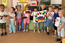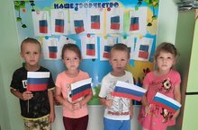 В группе "Ладушки" были проведены комплексные игровые беседы "Один флаг – одна Россия", "День Российского флага",коллективное рисование.