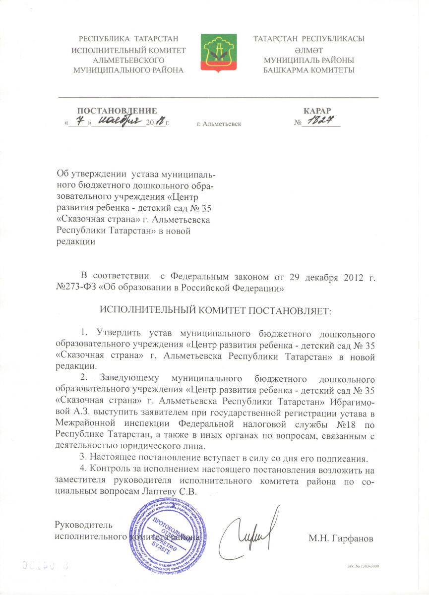 Муниципальное бюджетное дошкольное образовательное учреждение «Центр развития ребенка - детский сад №35 «Сказочная страна» г.Альметьевска Республики Татарстан» / Татарстан Республикасы Әлмәт шәһәре "Баланың сәләтен үстерү үзәге 35-нче "Әкият иле" балалар бакчасы муниципаль бюджет мәктәпкәчә белем бирү учреждениесе"